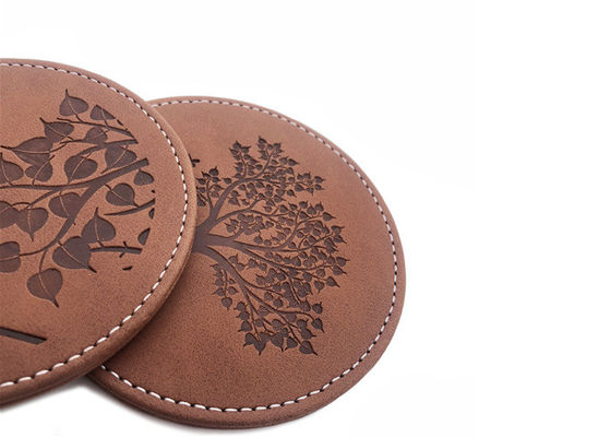 PU Leather Drink Coasters Set Customized Debossed Logo Coasters