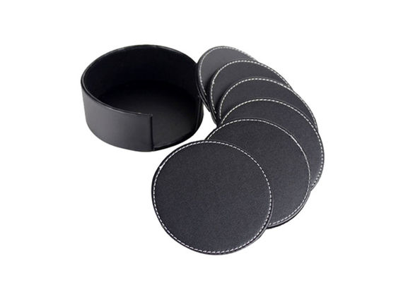 Black Round PU Leather Drink Coasters Set Customized Glass Coasters